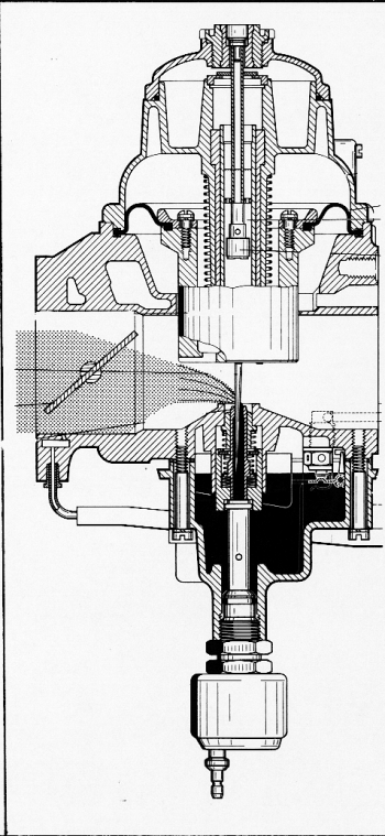 ein Kugelventil sein, oft ist es auch ein Ventilplättchen mit Feder. Bei Stellung der Drosselklappe im Vollastbereich ist das Pumpenventil geöffnet. Zusätzlicher Kraftstoff zur Anreicherung des Gemisches kann abgesaugt werden. Volllast. |